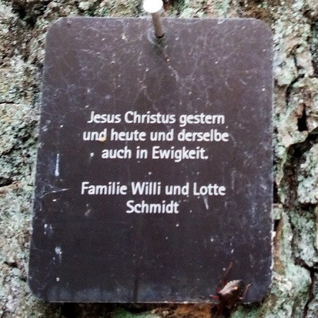 1989 verließ er Castell und verbrachte seinen langen Ruhestand in Hof an der Saale. Gewachsene Beziehungen nach Castell und von Castellern zu ihm begleiteten ihn bis zuletzt. Als seine Frau pflegebedürftig wurde, stand er ihr zur Seite. Ihr beider Wunsch war es, ihre letzte Ruhe im Friedwald auf dem Schwanberg zu finden, weil der Friedwald von der Communität betreut wird und dort das Gebet gepflegt wird. In der Nähe des Altärchens suchte sich Lotte eine Eiche aus. 2021 wurde sie dort beigesetzt. Auf dem Schild ist der Konfirmationsspruch von Willi Schmidt zu lesen: „Jesus Christus gestern und heute und derselbe auch in Ewigkeit.“ Darin ist ausgesagt, was das Fundament seines Lebens geworden ist. Willi Schmidt ist im Alter von 100 Jahren am Mittwoch, 4.2.2026, verstorben.